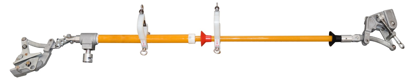 整套設(shè)備操作方便,重量輕巧,桿體采用的材料是FRP(纖維增強復(fù)合材料)耐高壓絕緣性能好而且材料結(jié)實,絕緣短桿操作使得作業(yè)人員遠離了高壓電線,滿足帶電作業(yè)安全距離要求。作業(yè)工具相互配合,更換不同金具實現(xiàn)靈巧作業(yè),極大程度做到了一干多用的特點。
